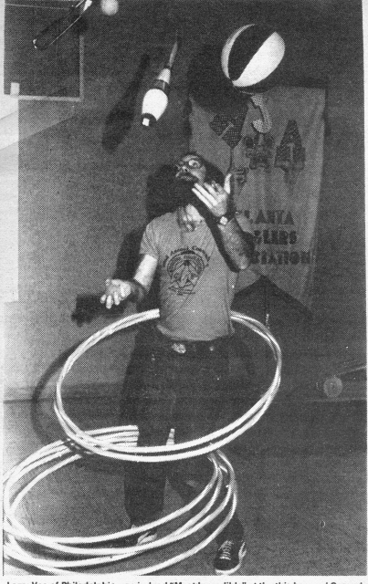 Larry Vee of Philadelphia was judged "Most Incredible" at the Ground Hog Jugglers Festival sponsored by the Atlanta Jugglers Association. Competition was held last Saturday at the Civic Center. Vee simultaneously juggled a basketball, a club, and two tennis balls while spinning six hula hoops around his waist and knees.
