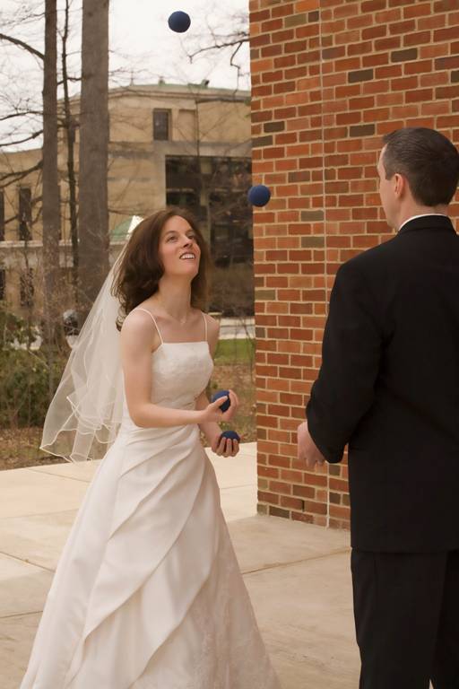 are of my husband and me juggling at our wedding on April 14, 2007.